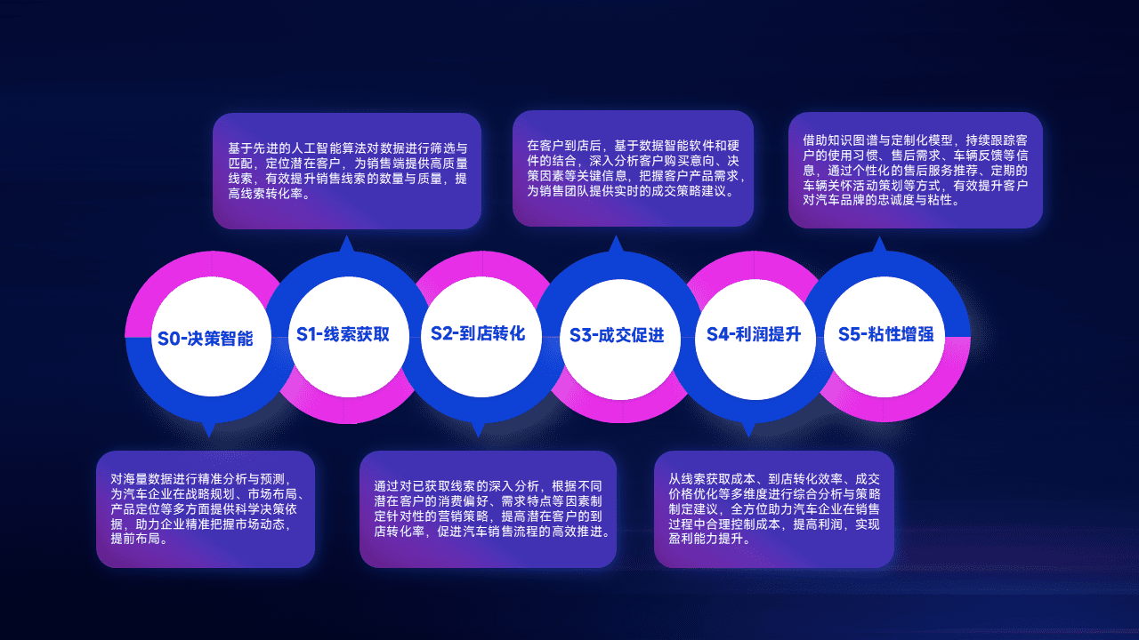 通过拓宽潜在客户来源、、、、优化线索分配并提高到店转化率,,以增强销售效率。。。同时,,利用线索数据不断优化分析模型,,,有效提升转化率,,,,扩大营销影响力。。